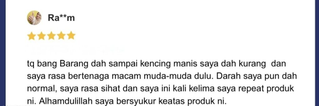 Dengan setiap pembelian, anda akan mendapat produk yang dikilangkan dan dibungkus di Malaysia dan menjalani prosedur kawalan kualiti yang ketat bagi menjamin keselamatan pengguna. Kami komited dalam menyediakan produk berkualiti tinggi supaya anda mendapat manfaat dan kesan terbaik daripada